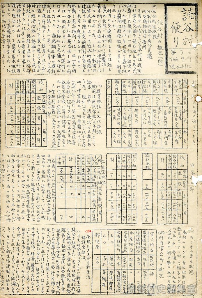 本村のラジオ普及状態は総戸数3401戸に対して親子ラジオが1752戸、普通ラジオ97戸、計1849戸で総戸数の54%である。