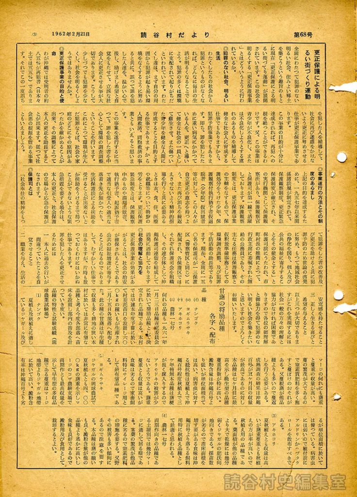 わたくしたちの社会から犯罪というものがなくなれば、どんなに毎日の生活が明るくなることでしょう。犯罪の多くは環境に支配されて起りがちだといわれています。わたくし達は、まず自分の周囲から犯罪が起き易い環境をなくするように努めると共に、誤って罪を犯した人達を、温かい心で接し、励げまし希望と自覚をもたせて、立派な社会人に更正させる事が大切であります。こうして少しずつでも犯罪を少なくし、社会を明るくしようではありませんか。