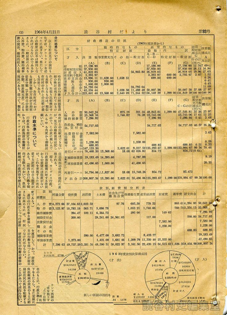 ※「財政構造の状況(1963年度決算から)」「款別、経費別分析表」「1963年度決算校正図(才入、才出)」については、原本参照。