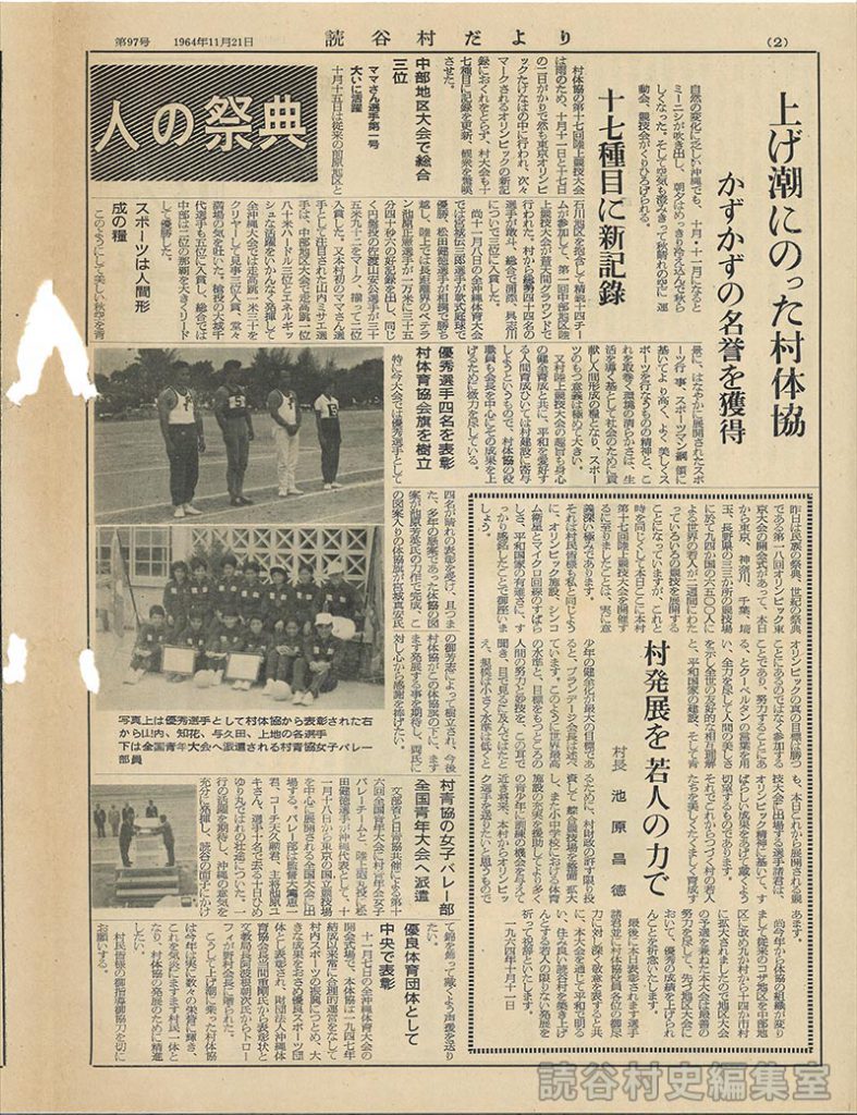 こうして上げ潮に乗った村体協は今年は実に数々の栄誉に輝き、これを気炎にますます村民一体となり、村体協の発展のために精進したい。