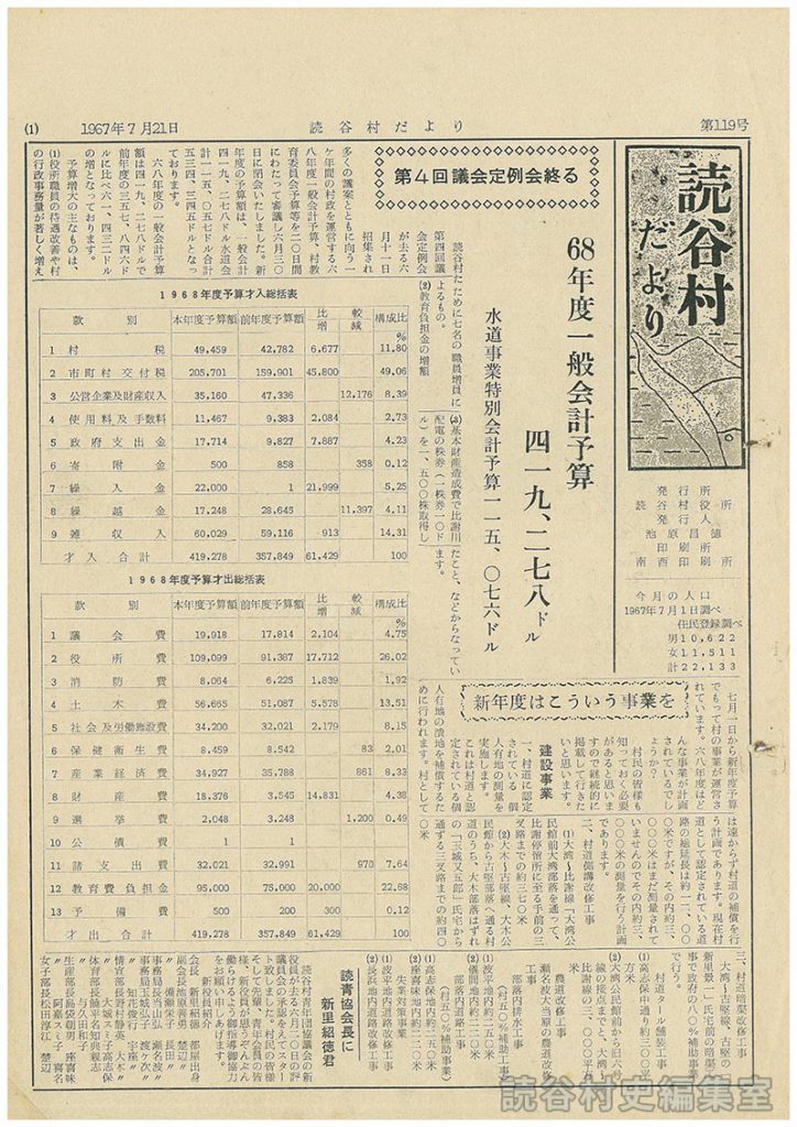読谷村青年団協議会の新役員が去る六月二〇日の評議員会の承認をえてスタート致しました。村民の皆様そして先輩、青年会員の皆様、新役員が思うぞんぶん働らけるよう御指導御協力をお願い申しあげます。