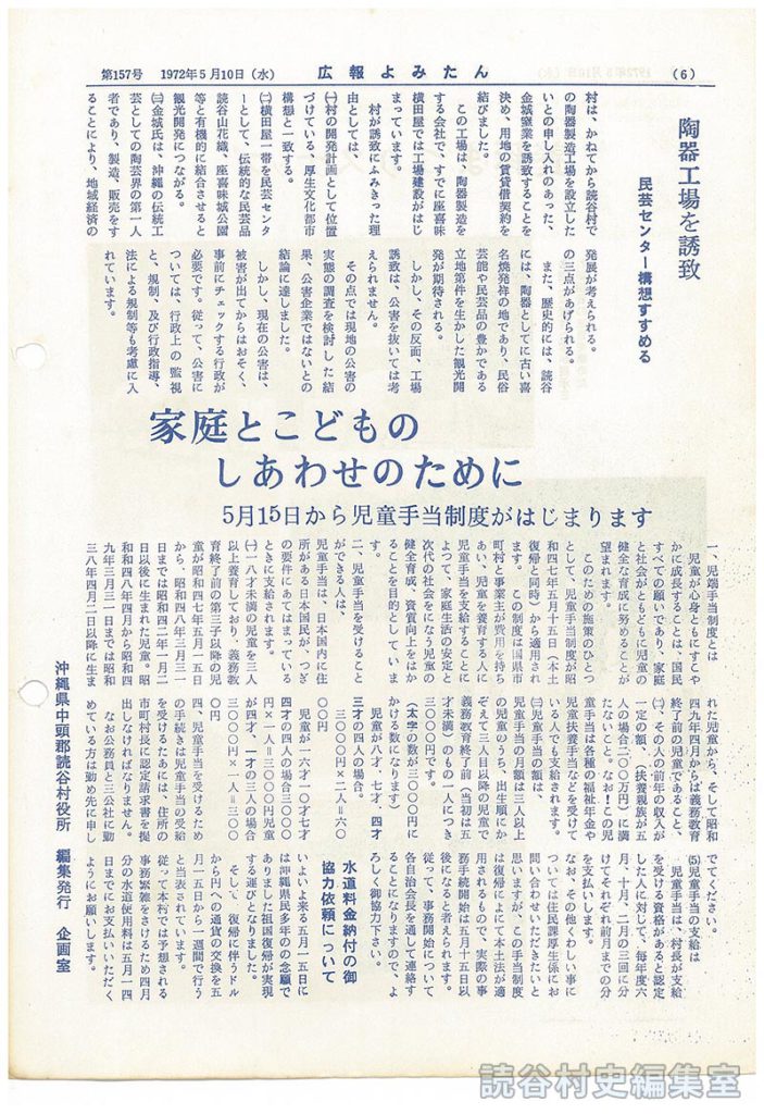 村は、かねてから読谷村での陶器製造工場を設立したいとの申し入れのあった、金城窯業を誘致することを決め、用地の賃貸借契約を結びました。