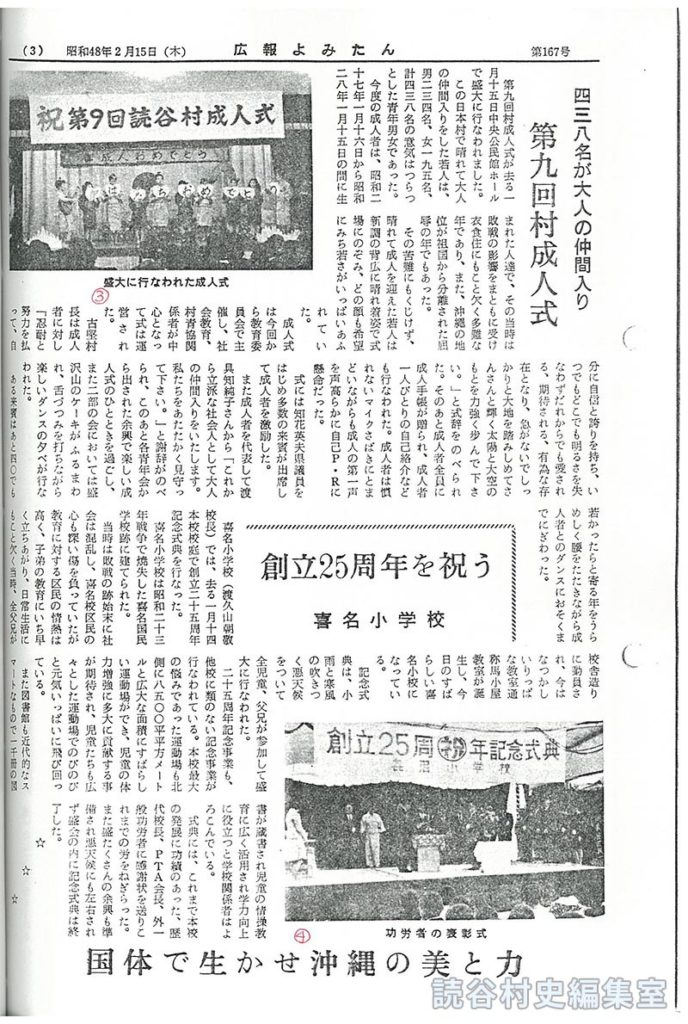 喜名小学校(渡久山朝敬校長)では、去る一月十四本校校庭で創立二十五周年記念式典を行なった。