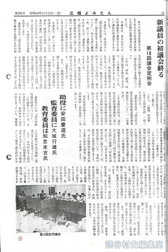 村民との対話を深め、村民の福祉向上のために適材と考え起用することにしました」。と助役選任の同意を求める説明がなされた。