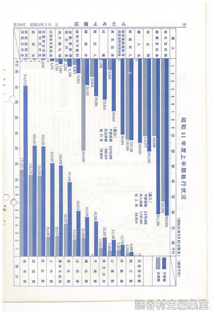 1977年2月発行 広報よみたん / 4頁 読谷村の財政 昭和50年度決算 昭和51年度上半期 昭和51年度上半期執行状況 この号の全件を見る 〔204号2・3ページの続き〕 ※グラフ「昭和51年度上半期執行状況」は原本参照