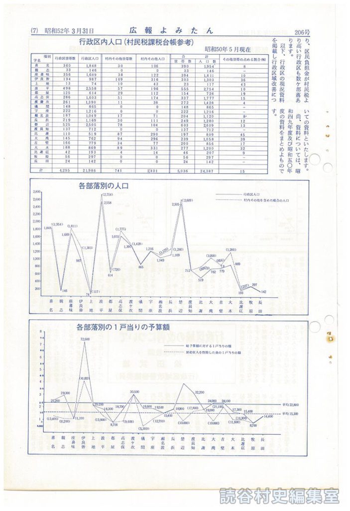 ※表「行政区内人口(村民税課税台帳参考) 昭和50年5月現在」、「各部落別の人口」、「各部落別の1戸当りの予算額」は原本参照