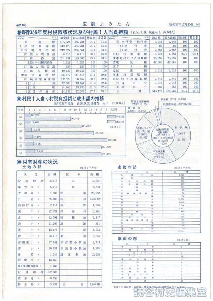 ※表「昭和55年度村税徴収状況及び村民1人当負担額」、「村民1人当り村税負担額と歳出額の推移」、「村有財産の状況」は原本参照