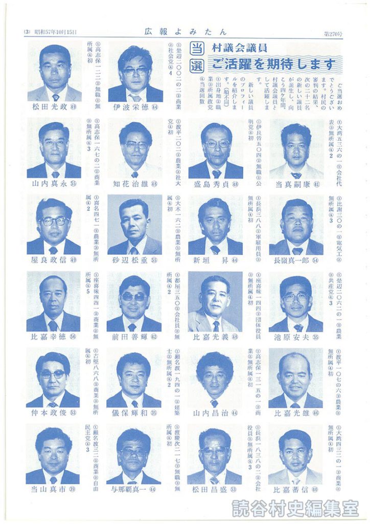 ※写真「当真嗣康(41)」、「長嶺真一郎(54)」、「池原安夫(35)」、「比嘉光雄(46)」、「比嘉蕃信(40)」、「盛島秀貞(48)」、「新垣昇(44)」、「比嘉光義(48)」、「山内昌治(44)」、「松田昌盛(53)」、「伊波栄徳(44)」、「知花治雄(48)」、「砂辺松重(55)」、「前田善輝(42)」、「儀保輝和(35)」、「与那覇真一(44)」、「松田光政(49)」、「山内真永(55)」、「屋良政信(49)」、「比嘉幸徳(56)」、「仲本政俊(53)」、「当山真市(39)」は原本参照