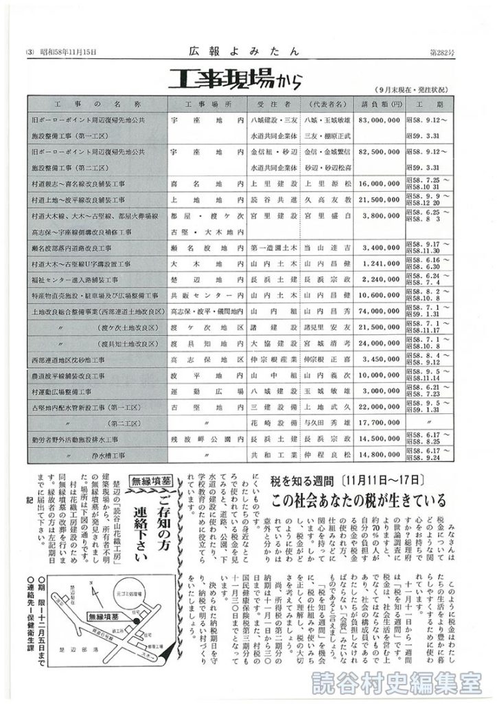 村は花織工房建設のため同無縁墳墓の改葬を行います。縁故者の方は左記期日までに届出て下さい。