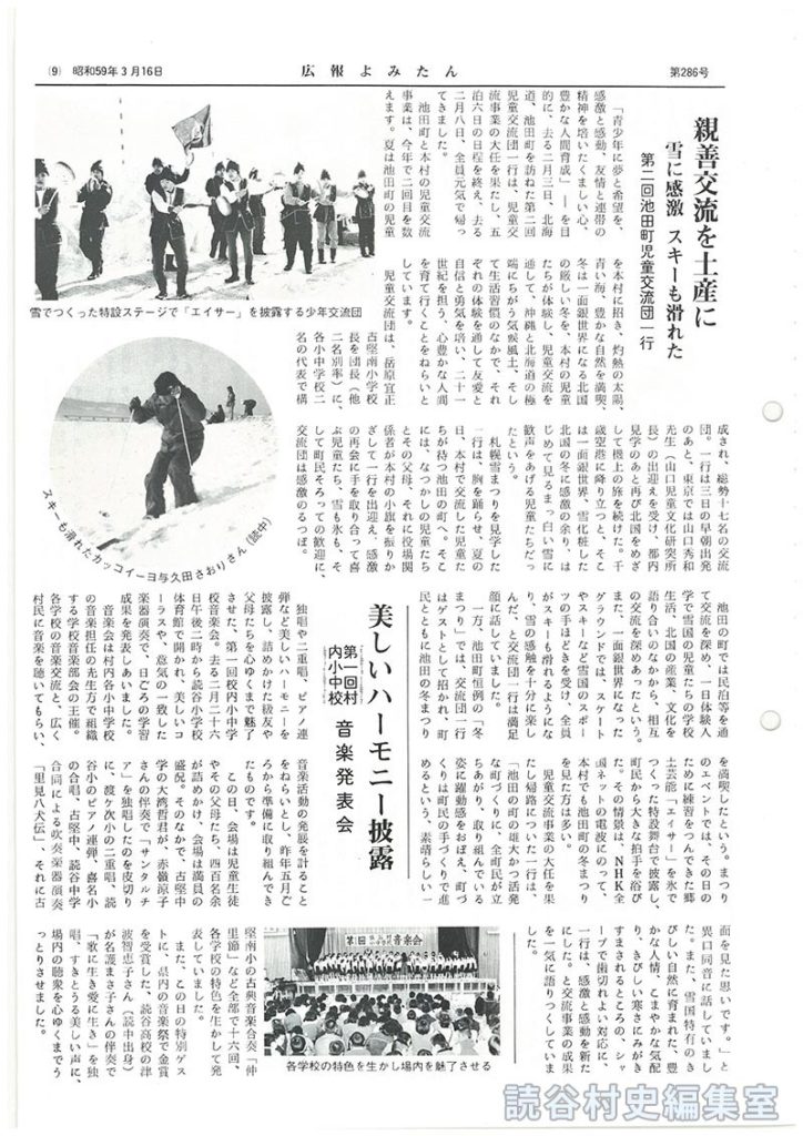 音楽会は村内各小中学校の音楽担任の光生方で組織する学校音楽部会の主催。各学校の音楽交流と、広く村民に音楽を聴いてもらい、音楽活動の発展を計ることをねらいとし、昨年五月ごろから準備に取り組んできたものです。
