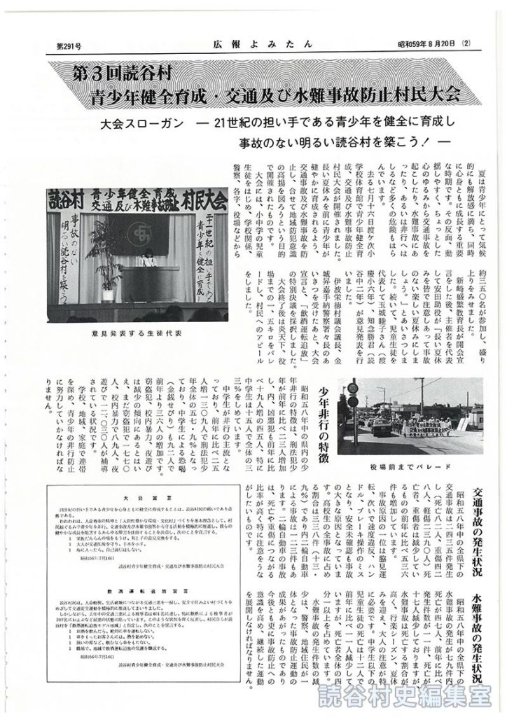 第3回読谷村青少年健全育成・交通及び水難事故防止村民大会 大会スローガン-21世紀の担い手である青少年を健全に育成し事故のない明るい読谷村を築こう!-