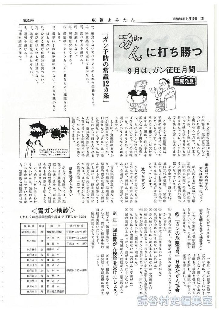 村では、保健事業の一環として、胃ガン検診を次の日程で実施いたします。