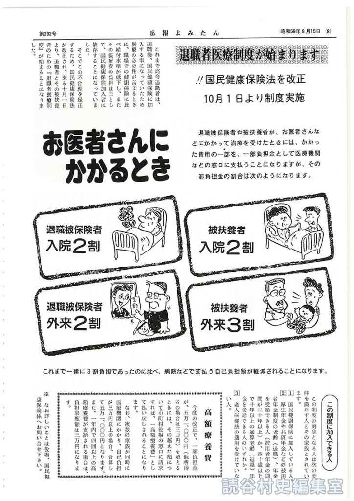 そこでこの不合理を是正するため、国民健康保険法が改正され、来る十月一日より、退職者とその被扶養者のための『退職者医療制度』が始まることになりました。