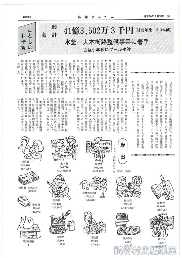 広報よみたんでは四月一日よりスタートする新年度予算の一般会計についてお知らせし、村民のご理解をいただきたいと思います。