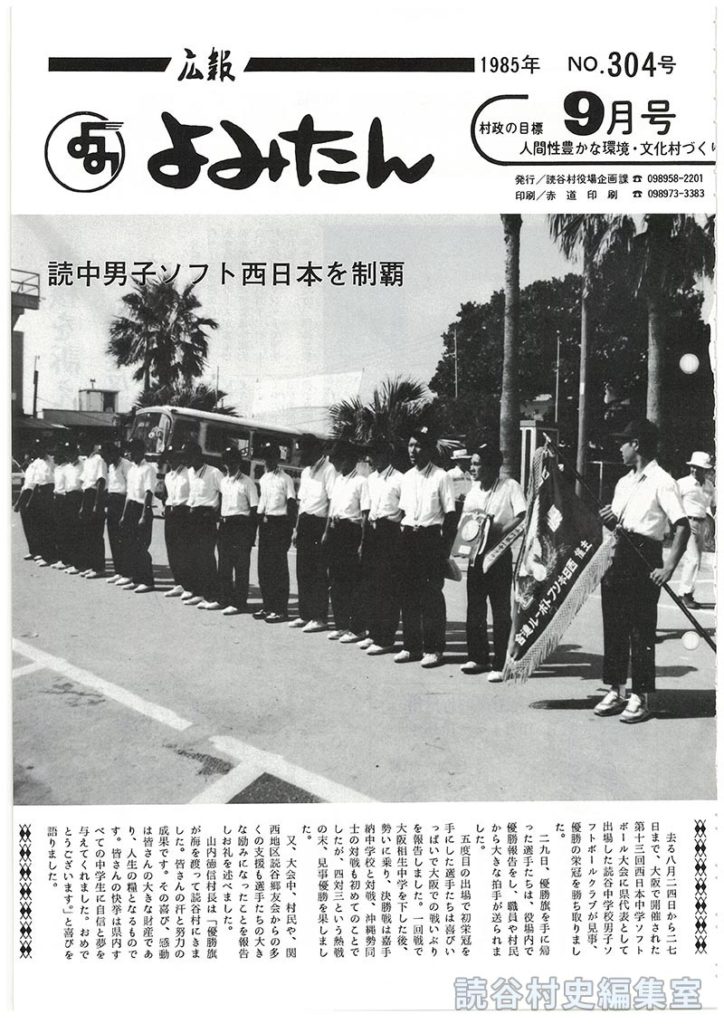 去る八月二四日から二七日まで、大阪で開催された第十三回西日本中学ソフトボール大会に県代表として出場した読谷中学校男子ソフトボールクラブが見事、優勝の栄冠を勝ち取りました。