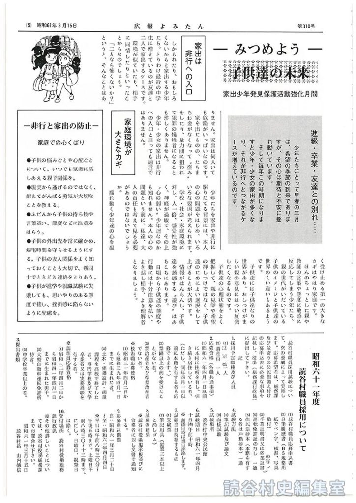 昭和六十一年度読谷村職員採用について