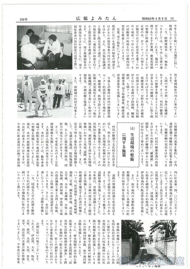 衛生環境につきましては、一般廃棄物処理場への生活ゴミの収集処理、し尿の広域処理、火葬業務、野犬対策を実施してまいりました。人口の増加と相まって年々増大傾向にある家庭ゴミの処理等、衛生行政は今日的な社会課題となっております。今年度も引き続いて、村民の衛生的な環境を確保するため、家庭ゴミの減量化、汲み取りし尿の広域処理、生活排水処理の適正化に努めるとともに、野犬対策、衛生害虫の駆除等、村民の衛生環境の保全と衛生思想の啓発に努めてまいります。