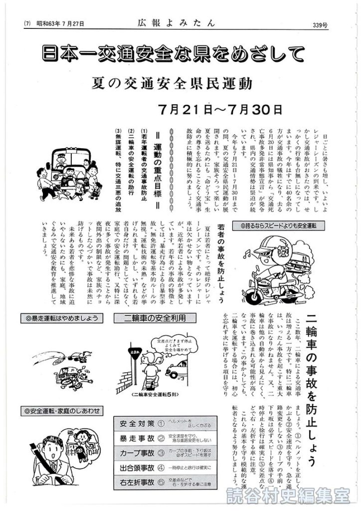 日ごとに暑さも増し、いよいよレジャーシーズンの到来です。しかし交通事故がおきたのでは、せっかくの行楽も台無しになってしまいます。今年はすでに40名余の方が交通事故の犠牲になり、去る6月20日には県知事から「交通死亡事故多発非常事態宣言」が発令され、県内の交通情勢は緊迫が続いています。