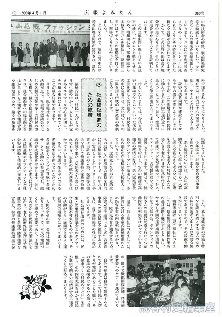 村といたしましては、今後も読谷山花織やヤチムンといった伝統工芸を正しく受け継ぎ、村民生活の中に定着させ、文化村、づくりの一翼を担う伝統的工芸産業の発展に努めてまいります。