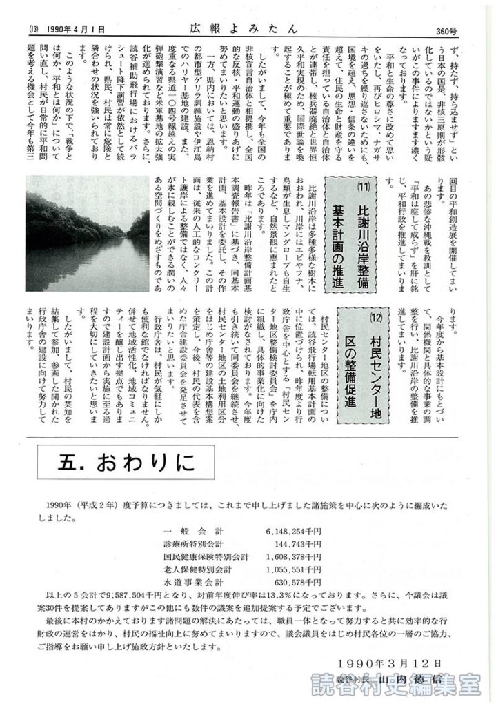 1990年(平成2年)度予算につきましては、これまで申し上げました諸施策を中心に次のように編成いた
