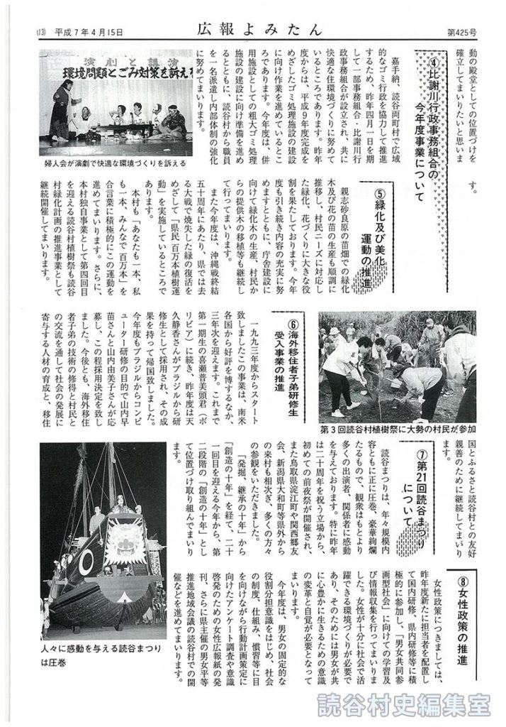 「第二五五回読谷村議会定例会」において平成七年度の村予算は可決されました。