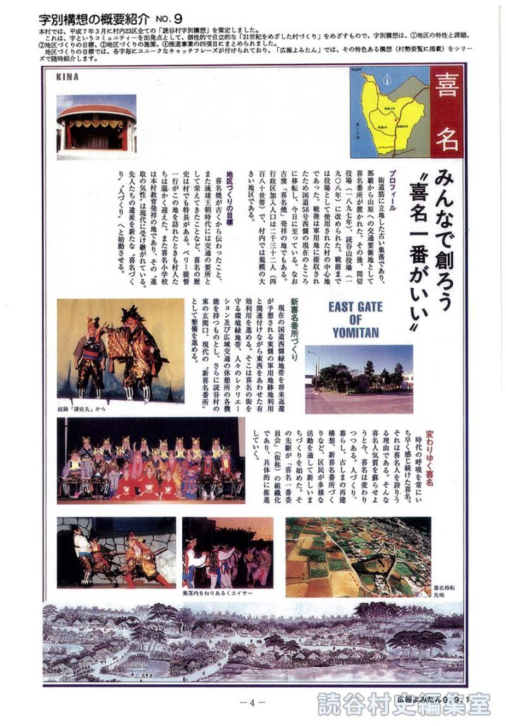 本村では、平成7年3月に村内23区全ての「読谷村字別構想」を策定しました。