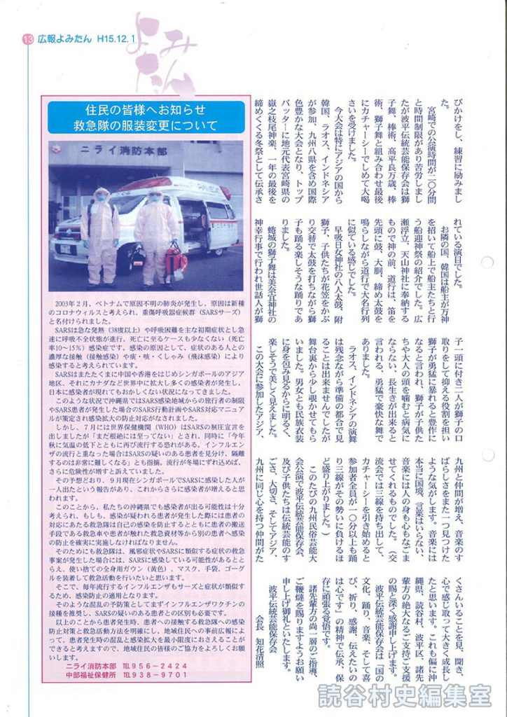 このような状況で沖縄県ではSARS感染地域からの旅行者の制限やSARS患者が発生した場合のSARS行動計画やSARS対応マニュアルが策定され感染拡大の防止対応がなされました。