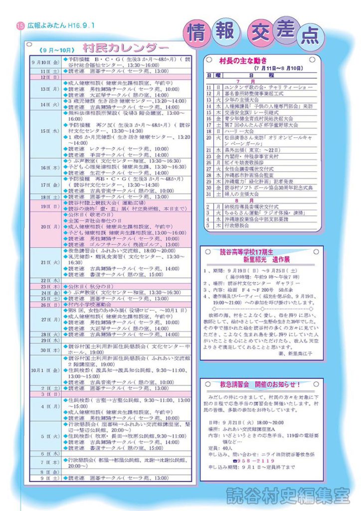 2004年9月1日発行 広報よみたん[〈9月~10月〉村民カレンダー]