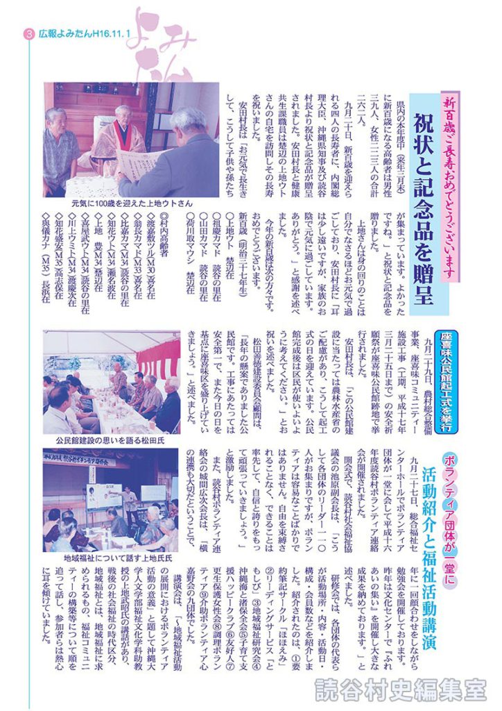 九月二十七日、総合福祉センターホールでボランティア団体が一堂に会して平成十六年度読谷村ボランティア連絡会が開催されました。