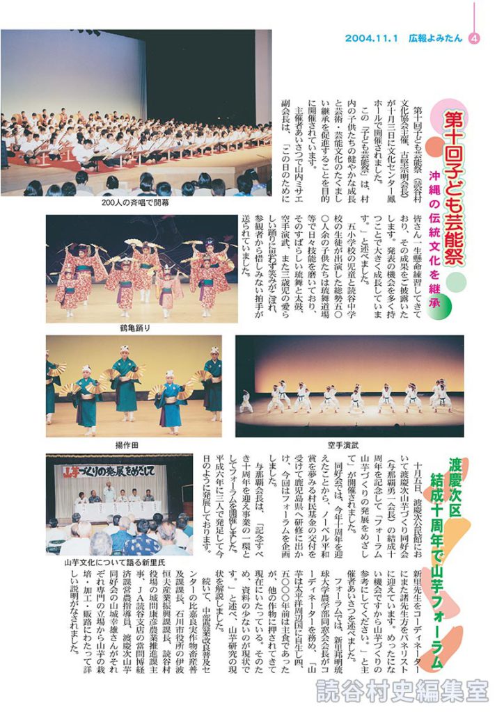 十月五日、渡慶次公民館において渡慶次山芋づくり同好会(与那覇勇一会長)の結成十周年を記念して「フォーラム 山芋づくりの発展をめざして」が開催されました。
