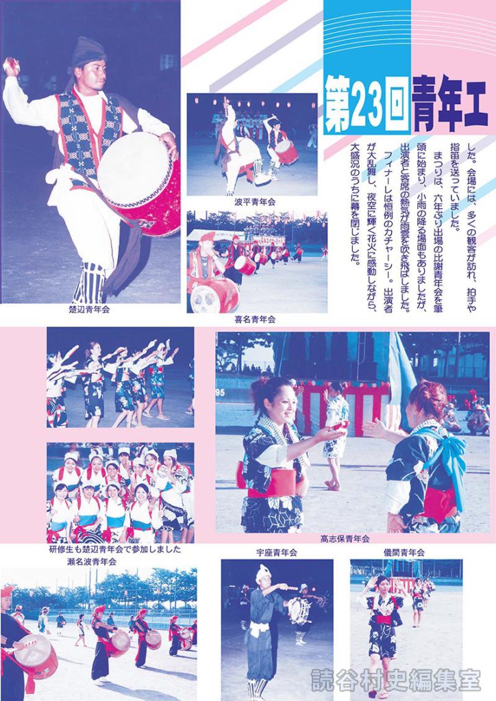 本村の夏の風物詩としてすっかり定着した読谷村青年エイサーまつり(主催・読谷村青年団協議会)が、8月28日、平和の森球場で開催されました。